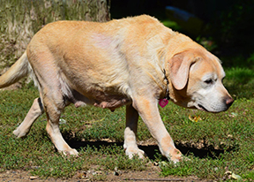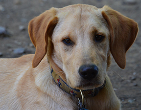 Sandy, golden retriever. Amish breeder dog, spent 13 years living in a rabit hutch. 16+ years old.